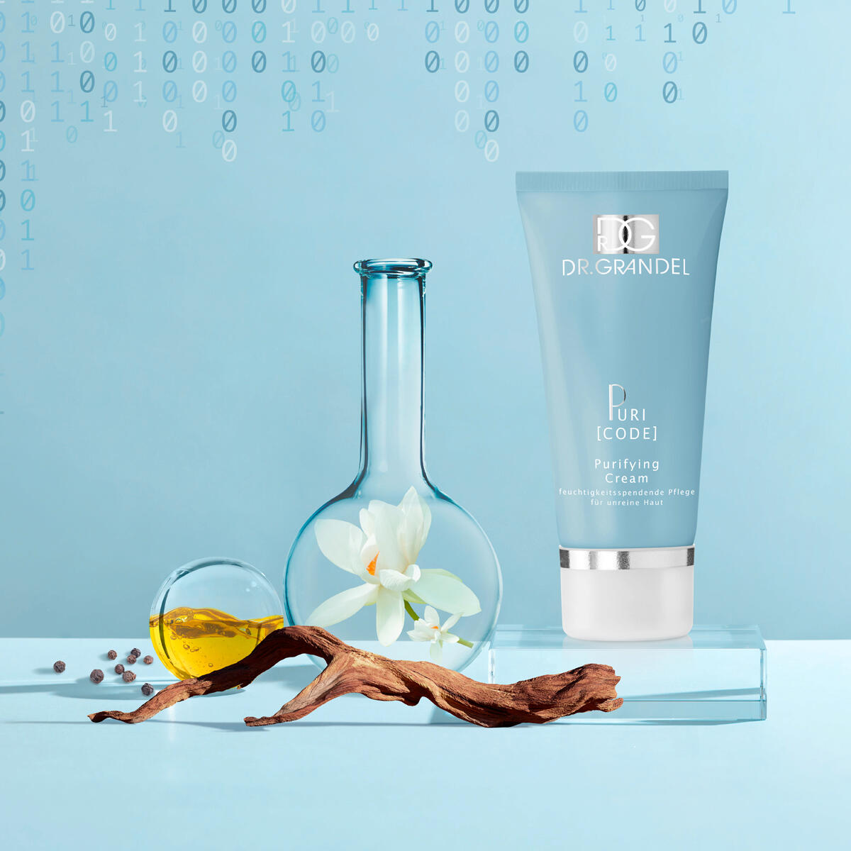 De PuriCode van Dr Grandel biedt een intelligent concept van actieve ingrediënten die de onzuivere huid onmiddellijk weer in balans brengen, maar ook voor de lange termijn.