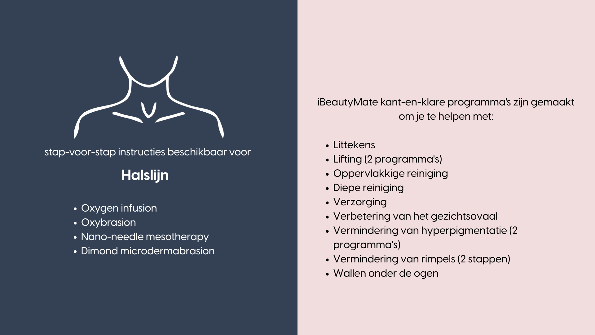 Of u nu bestaande apparatuur wilt upgraden of uw behandelingsaanbod wilt uitbreiden, iBeautyMate is een betrouwbare, toekomstgerichte oplossing voor serieuze professionals. U krijgt: