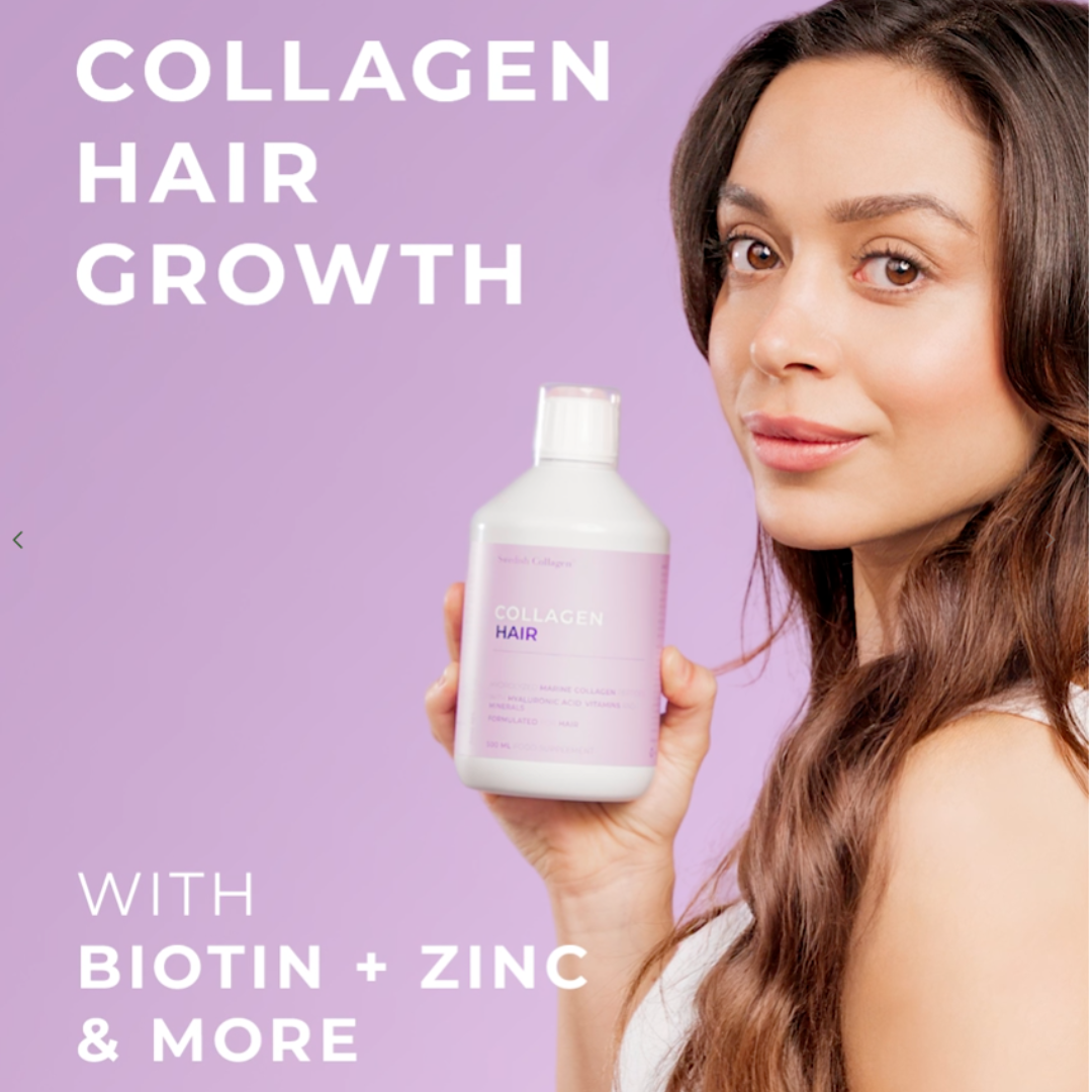 Swedish Collagen Hair is een hoogwaardig vloeibaar collageensupplement dat is ontwikkeld ter ondersteuning van gezonde haargroei, natuurlijke glans en een jeugdige huid. De formule combineert marien collageen, biotine, hyaluronzuur, inositol, CoQ10, vitaminen, mineralen en botanische extracten in één suikerloze dagelijkse shot van 25 ml.