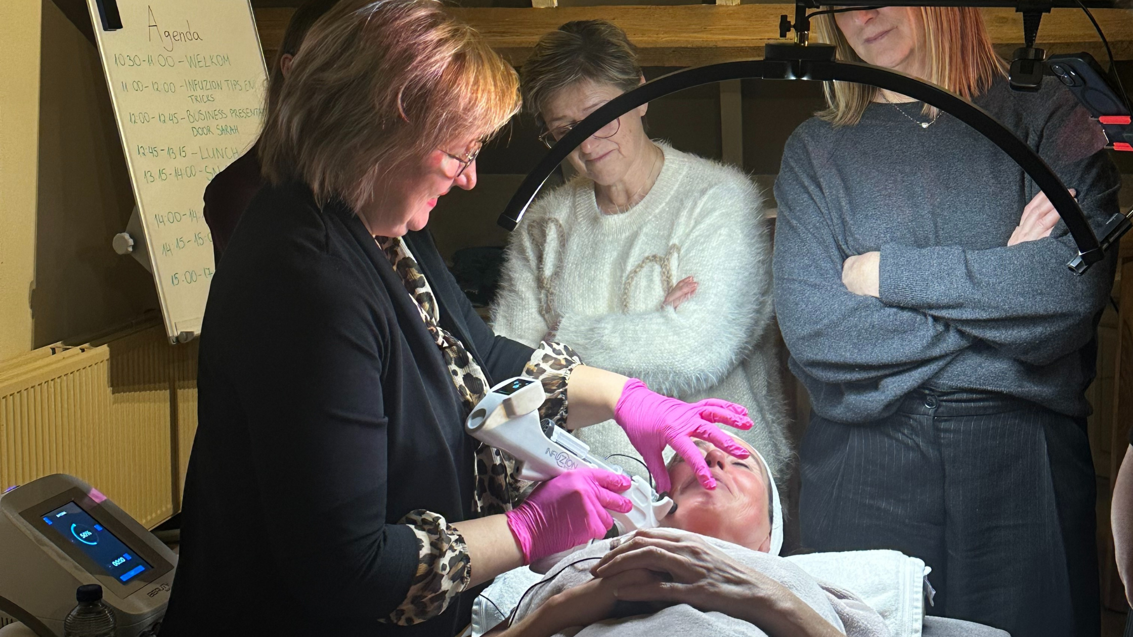 Het Infuzion System gebruikt galvanische stroom om hyaluronzuur en actieve ingrediënten diep in de huid te brengen — comfortabel, veilig en zonder downtime. Klanten zien en voelen onmiddellijk resultaat.